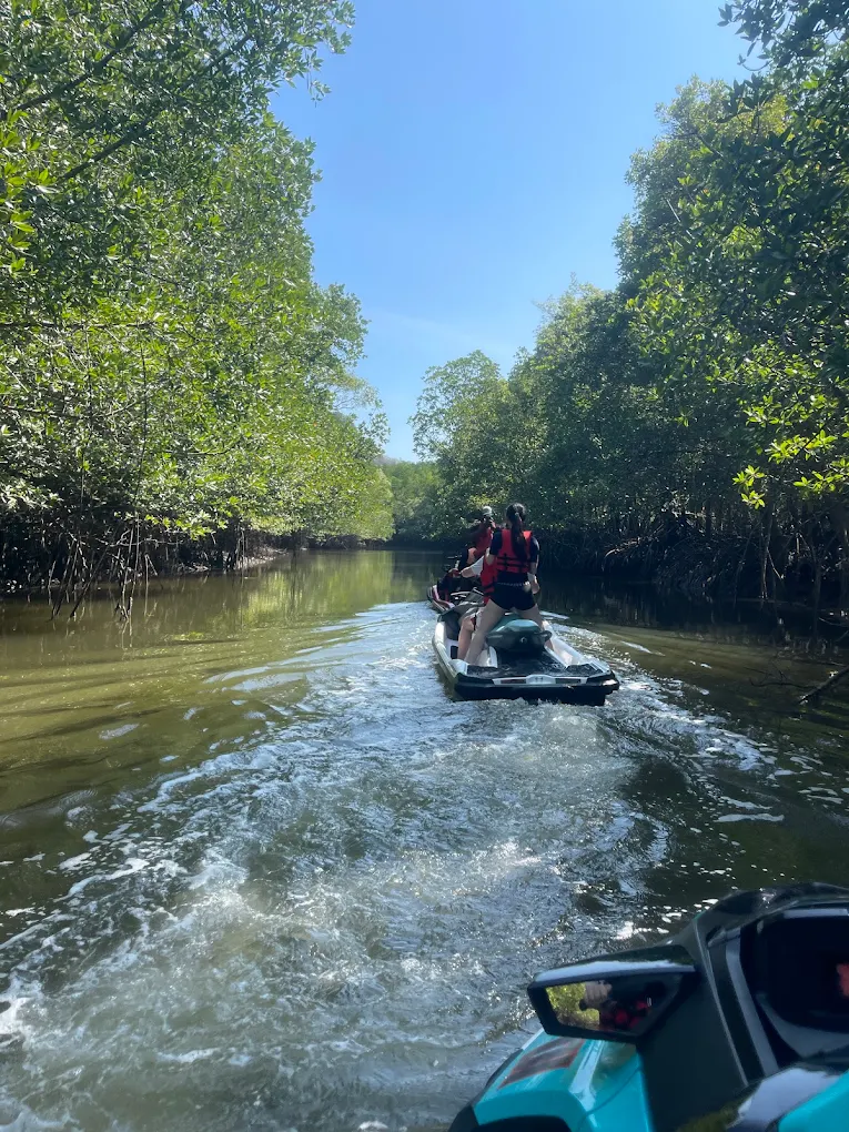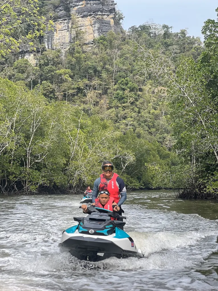 Lets go on an exciting and unique adventure with our Mangrove Tour by Jet Ski in Langkawi! This group is lead by Professional Guide, takes you on a thrilling ride through some of the most scenic and diverse locations around the Kilim Geoforest Park. Over the course of 3 to 4 hours, you’ll visit nine must-see spots, including the Fish Farm, where you can interact with marine life, and the Crocodile Cave, known for its fascinating rock formations. Enjoy the beauty of the Andaman Sea, visit Shoe Island, and take in the serene beaches along the way. A highlight of the tour is the fish feeding experience at Dangli Island, where you can witness the vibrant marine ecosystem up close.